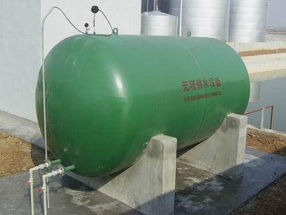该设备突出优点是,不需建造水塔,投资小,占地少,采用水气自动调节、自动运转、节能与自来水自动并网,停电后仍可供水,调试后数年不需看管。比建造水塔节约投资70%,比健在高位水箱节约投资60%,大大节约土建投资,广泛用于企事业单位、住宅区及农村的生产、生活、办公用水。供水户在20-2000户。日供水量在20-50000m3,供水高度达150米,即50层楼房。